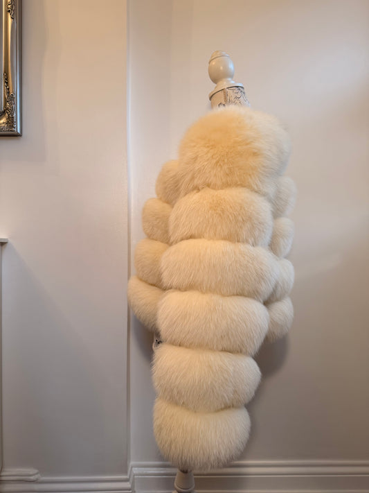 Luxury Cropped 6 Ring Fox Fur - Cream
